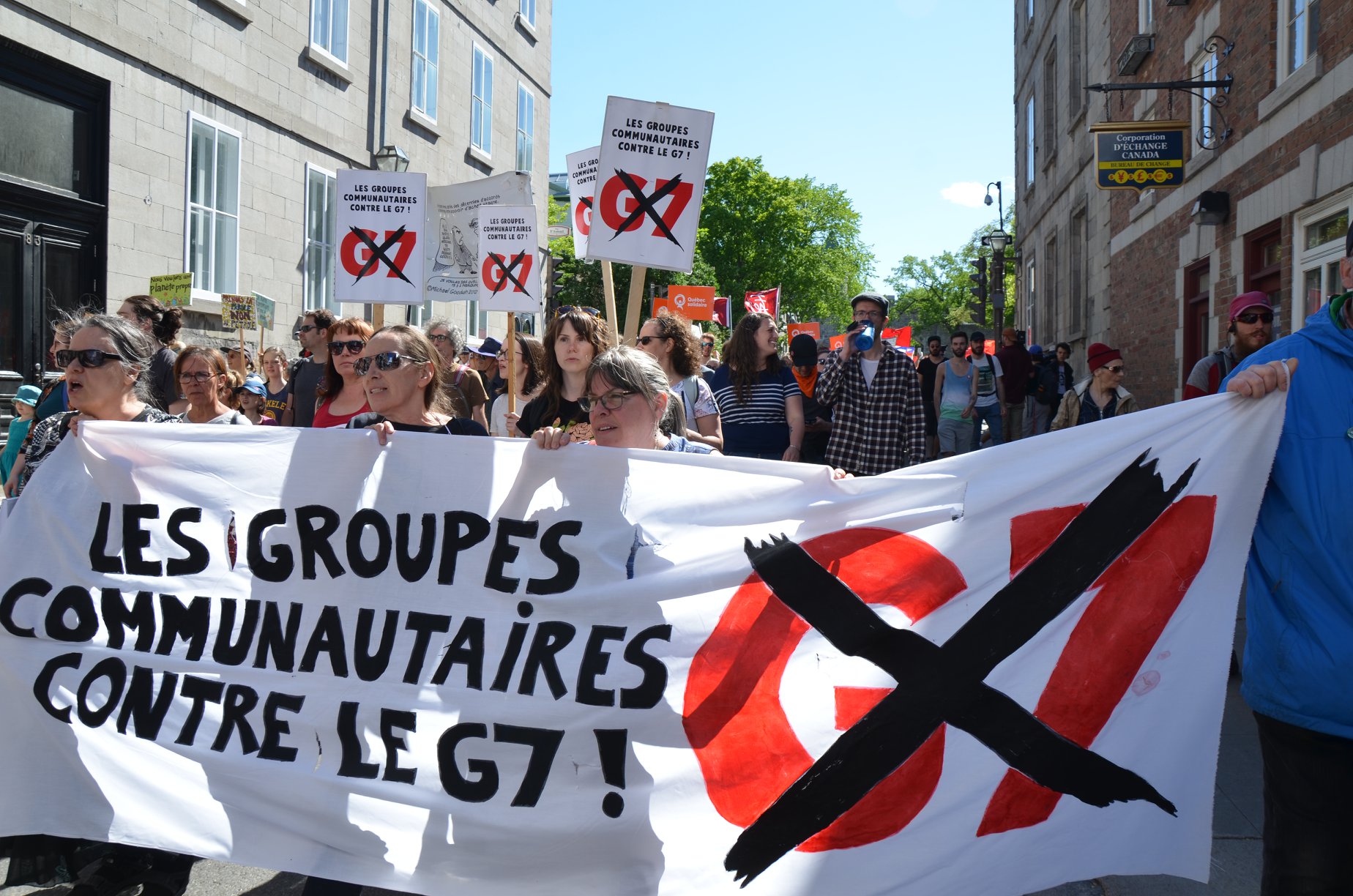 Il est essentiel de continuer à se mobiliser contre les politiques du G7, pour faire entendre qu’il est urgent de trouver des solutions efficaces pour éliminer les inégalités. Dans le cadre de l’initiative unitaire et pacifique des 12 heures pour un Forum alternatif au G7, les groupes citoyens, syndicaux et communautaires appellent ses membres et la population à exprimer un refus des politiques qui accentuent les inégalités et qui mettent en danger la planète !