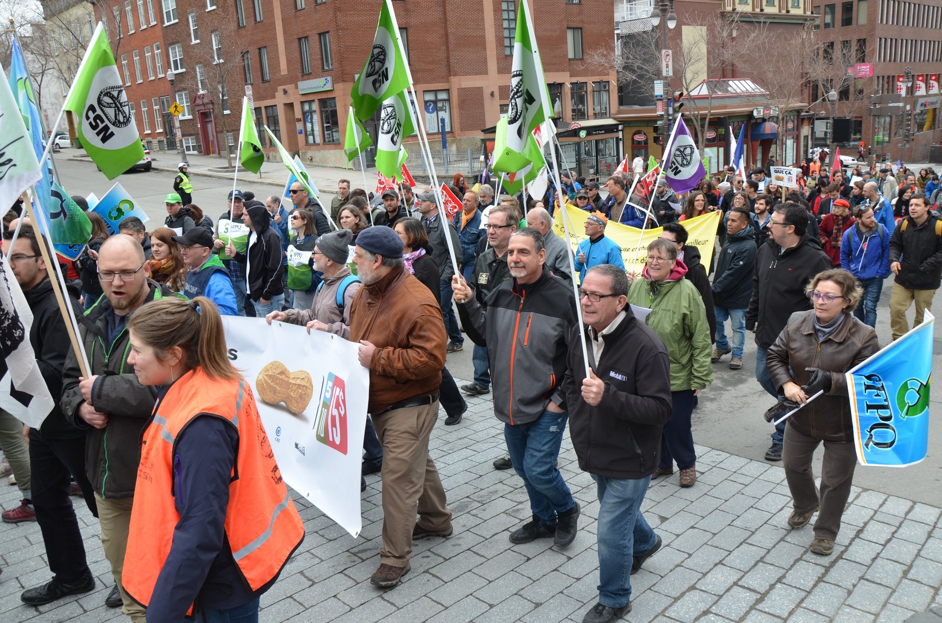 À l’instar de la manifestation nationale qui s’est tenue le 28 avril à Montréal, les organisateurs de la manifestation régionale tenaient à souligner la Journée internationale des travailleurs et des travailleuses à Québec, sur la colline parlementaire. « Aujourd’hui, on met la table pour la campagne électorale qui s’en vient, les groupes sociaux et les syndicats souhaitent interpeller la population et les futurs candidates et candidats aux élections sur ces enjeux majeurs pour l’avenir du Québec », a conclu Norman Paradis du SFPQ.