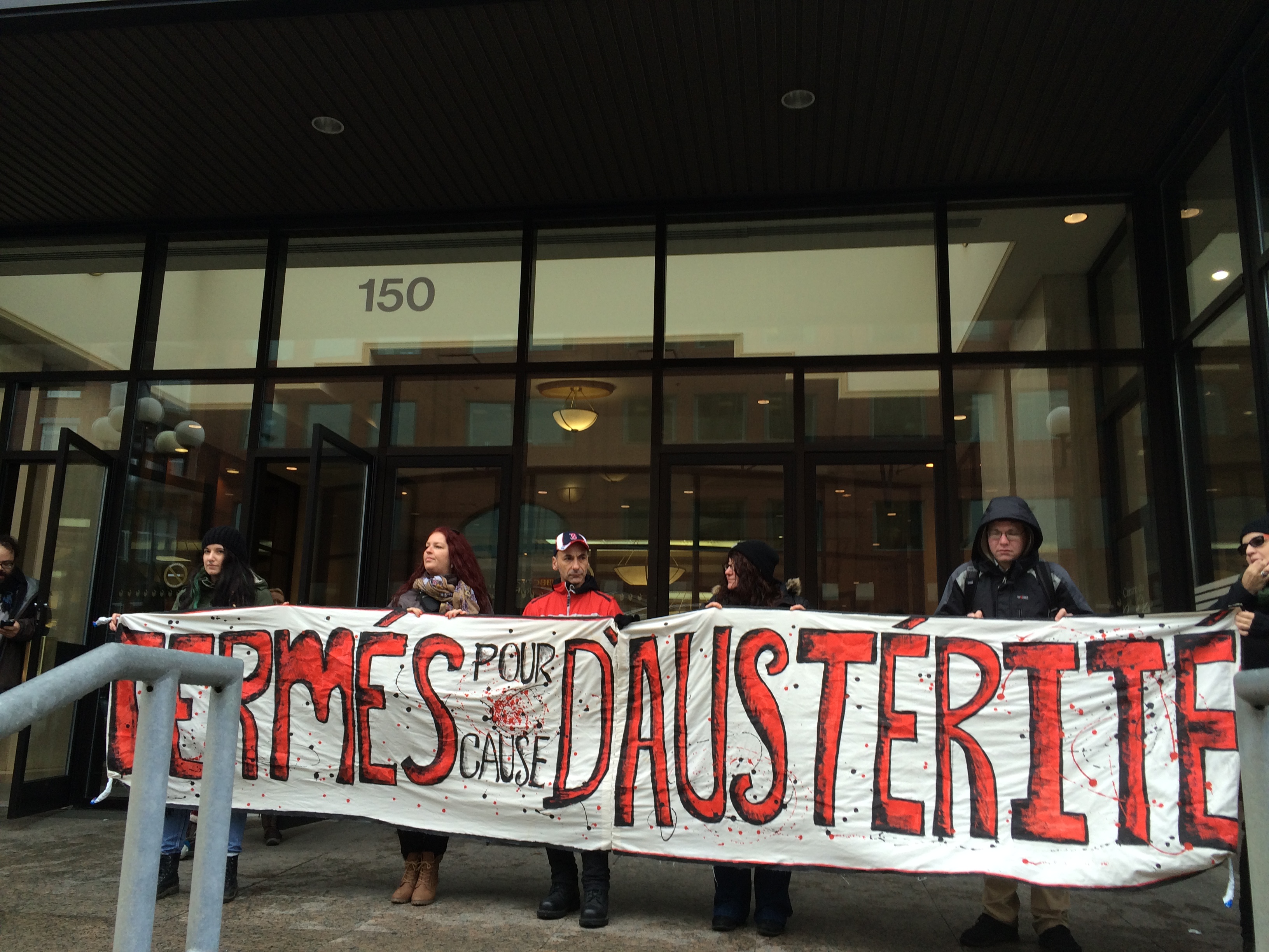 Le communautaire ne se mobilise pas seul, il fait partie prenante de la contestation populaire contre l’ensemble des mesures d’austérité. Monsieur Wright-Larin affirme que « le gouvernement doit revoir ses priorités et cesser les compressions dans nos services publics. L’argent nécessaire pour maintenir les conditions de vie et de travail de toute la population se trouve dans les banques et dans les grandes entreprises privées. »